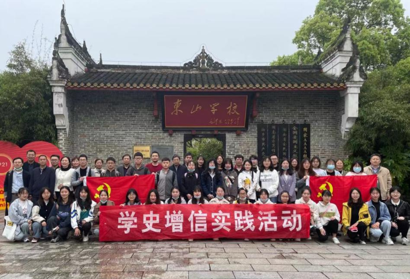 2021年4月27日下午3点,化学专业教工党支部联合化学专业员工党支部,共同前往东山书院开展学史增信实践活动。东山书院位于湖南省湘乡市,迄今已有百年历史,这里历史悠久,是伟人毛泽东的母校,也培育出谭政、陈赓等众多优秀革命家,具有光荣的革命传统。我们怀着对伟人深切缅怀和崇敬之情,踏上了前往东山书院的道路,通过实地参观学习,追寻革命足迹,切实体会革命精神。
