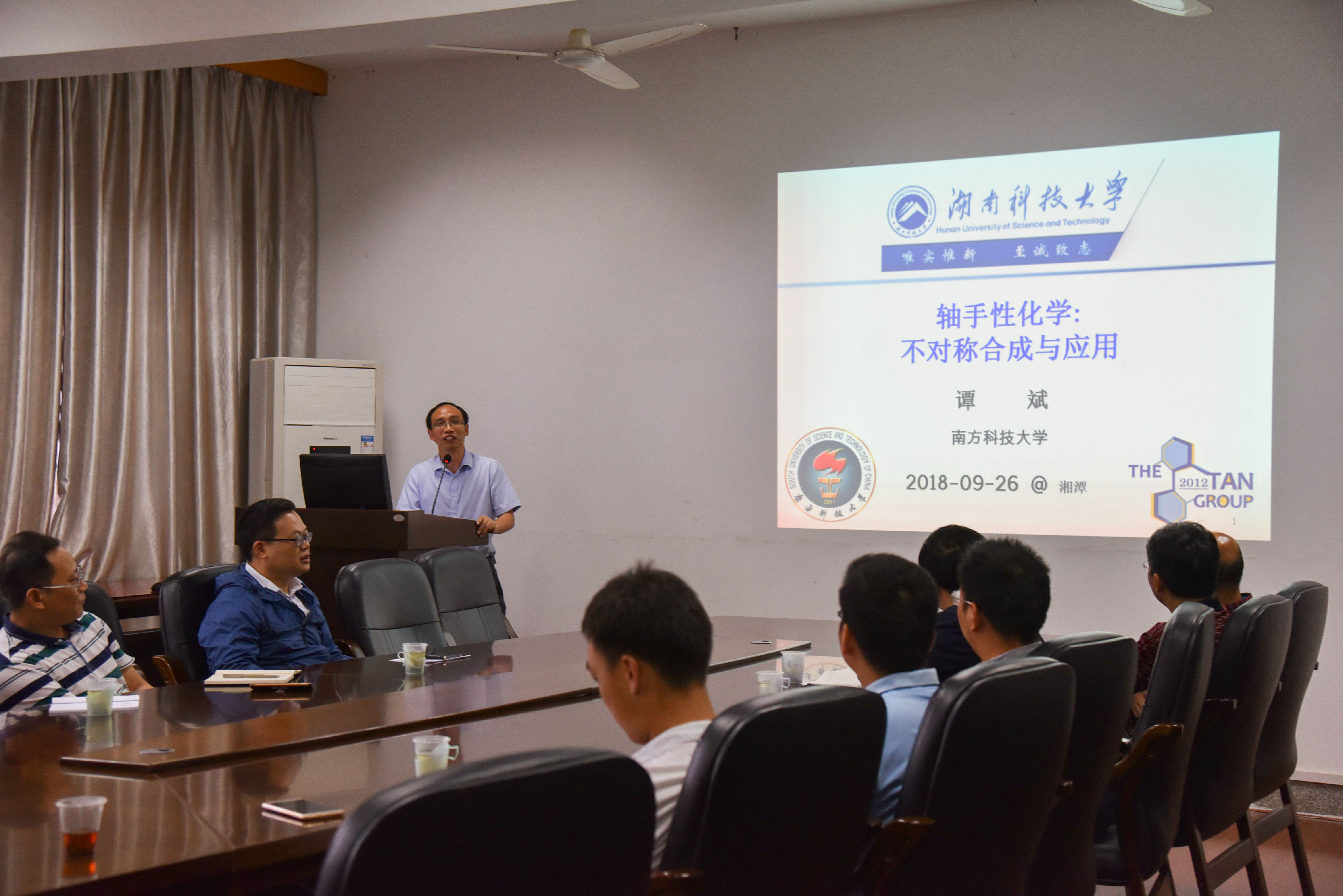 2018年9月26日下午,应谈球吧和理论有机化学与功能分子教育部重点实验室的邀请,国家杰出青年基金获得者谭斌教授在化工楼三楼学术报告厅以“轴手性化学:不对称合成与应用”为主题,做了一场精彩的学术报告。谈球吧师生、理论有机化学与功能分子教育部重点实验室科研人员等到场聆听。此次报告会由公司周虎书记主持。