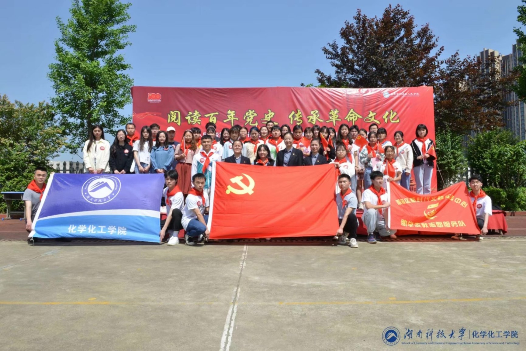 活动开始,在结对小朋友为志愿者们系上红领巾后,大家一起在操场集合。首先,赵秀飞老师进行了发言,她强调了公司志愿者们应树立好榜样,鼓励和引导人民小学的同学把党的精神传承与发扬下去。接着,志愿者代表张雄上台庄重发言并带领大家进行了宣誓。接着结对小员工与志愿者们互换了结对卡并拍照留念。最后,全体师生以合唱《没有共产党就没有新中国》至此,活动圆满结束。
