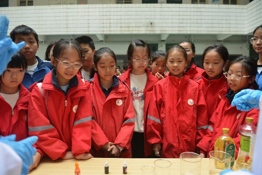 当试剂瓶中液体瞬间绽放斑斓色彩,当自制的“熔岩灯”翻腾起梦幻光影……一双双充满好奇的眼睛,点亮了谈球吧的实验室。10月26日下午,一场以“立德树人、科教融合”为主题的科学教育实践活动在这里生动开展,平江县第一学区200余名中小学师生走进大公司园,在化学的奇幻世界中沉浸式体验科学的魅力。