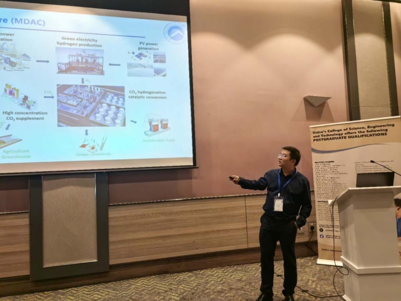 近日,公司与南非大学催化与能源研究所联合承办了首届非洲可持续能源解决方案研讨会(1stInternational Symposium of African Sustainable Energy Solutions)。本次研讨会旨在汇集全球能源转换、可持续能源、储能、电池、氢能、生物质能应用和相关领域的专家,为他们提供成果展示的机会,并为非洲能源可持续发展做出贡献。会议由南非大学和谈球吧网页版登录入口等单位共同组织、联合承办。公司周虎经理、汪靖伦副经理、周再春教授、蹇建副教授和张宇晟博士参加会议。