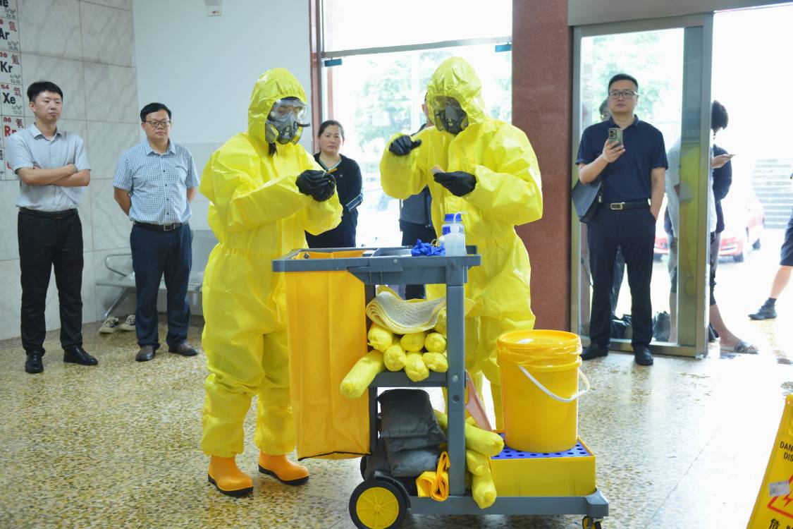 演练过程中,谈球吧的员工代表模拟了实验室中常见的危险事故场景,并与实验室负责人紧密合作,展示了处理危险废弃物泄露事故的整个流程。何明华和张朴进行专业解说,不仅详细解释了每一步操作的科学依据和正确方法,还针对演练中暴露出的问题提出了切实可行的改进建议。
