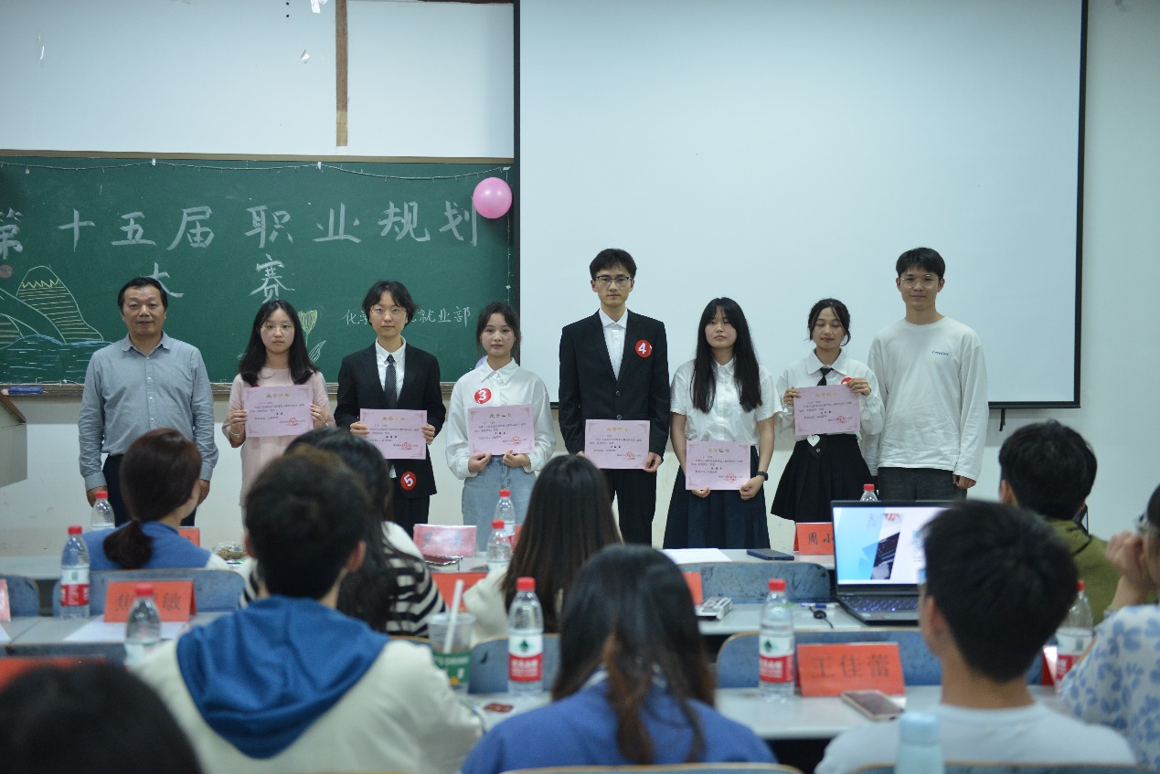 比赛由职业规划陈述与评委提问两个环节组成。参赛选手按照抽签顺序通过PPT展示个人未来的职业规划。“我有志于成为一名中学化学老师”、“我的未来规划是创造属于自己的公司”......选手们通过对职业本身的介绍和分析、多维度的自我测评后确立职业规划,详细制定各阶段目标和实施计划。