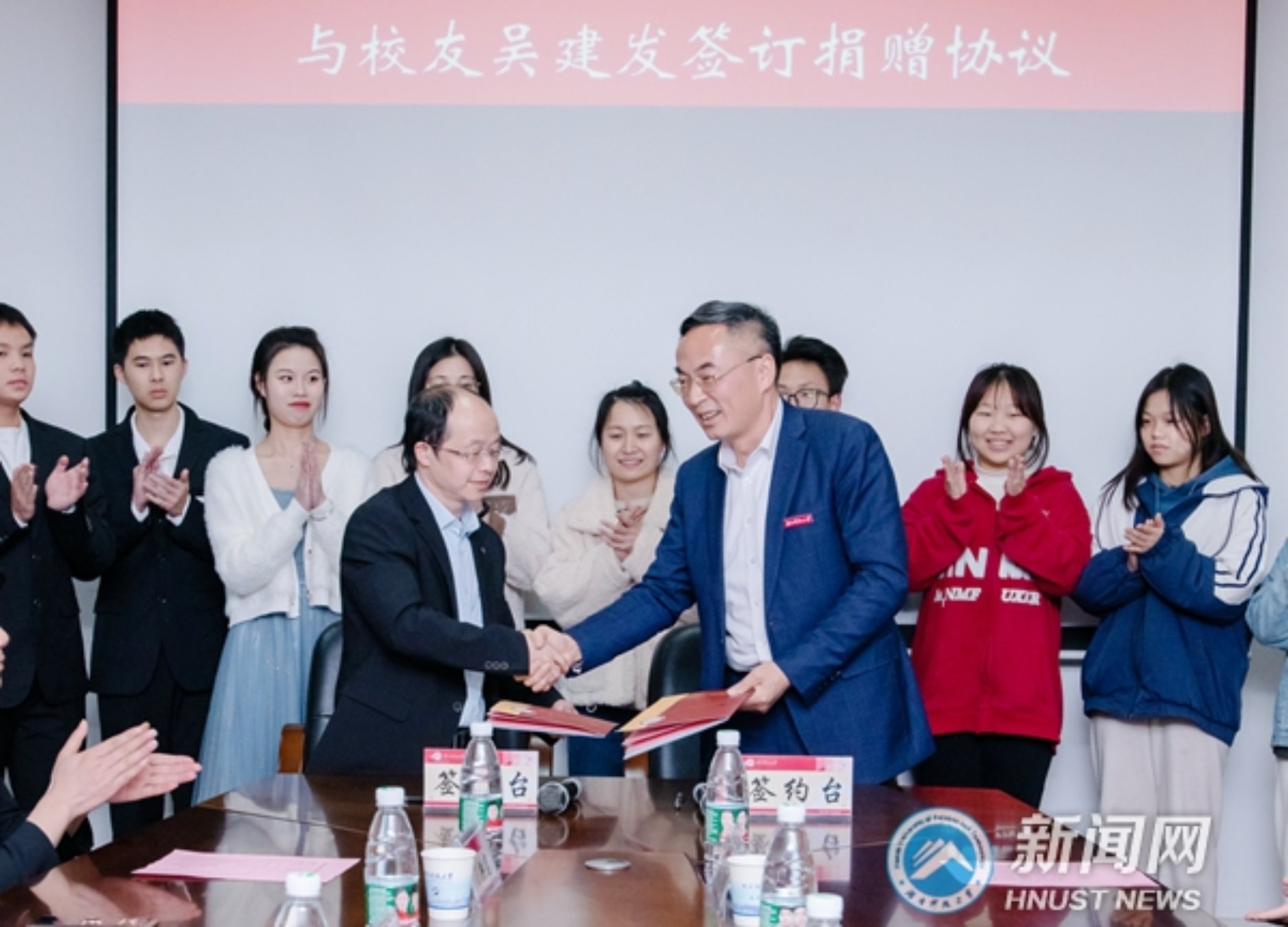 会上,副董事长廖湘岳和吴建发代表双方签署了捐赠协议。