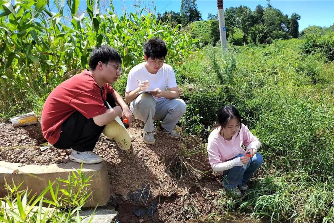 此次活动中,暑假实践团队充分发挥专业优势,聚焦茶铺村的水质和土壤问题,进行了全面细致的采样与检测工作。实践团队在茶铺村民兵连长许轲的陪同下分别在当地采石场、垃圾填埋场、双付组水源等十五个地点严格按照科学流程进行了水质、植物及土壤采样,确保了数据的准确性和可靠性。