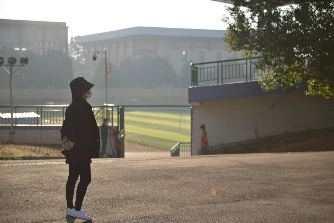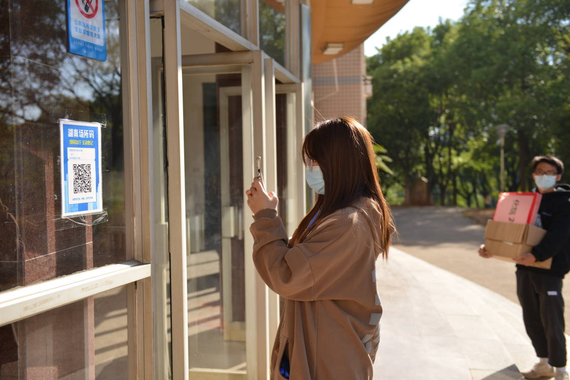 谈球吧21级辅导员陈小庭老师在进口处等候员工