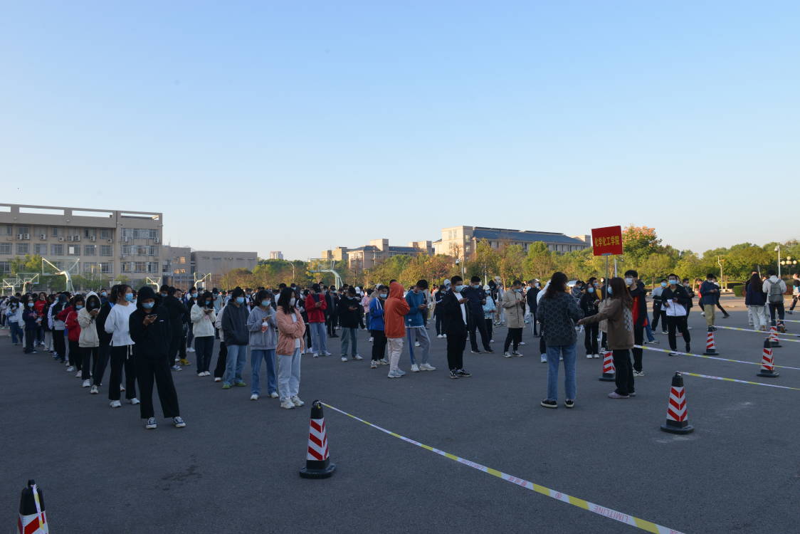 旭日东升,第一田径场的地面上洒满和煦的阳光,公司学子正有条不紊地排队候场进行核酸采样。公司党委副书记周小明来到采样现场,指导同学们的核酸采样工作。他与同学们亲切交谈,叮嘱同学们疫情之下不仅要做好个人防范措施,也要保持良好的心态,养成良好的生活习惯和规律的生活作息,支持公司的防疫工作。