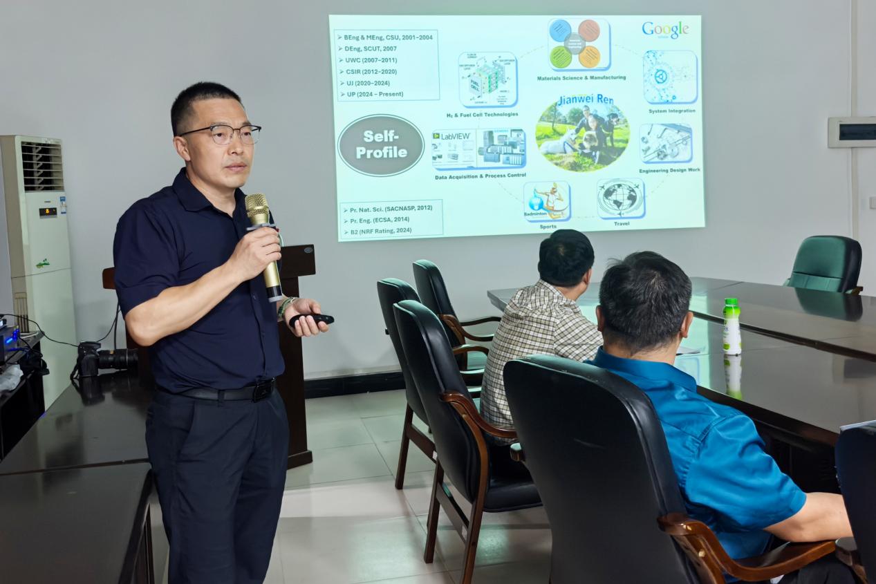 会议伊始,任建伟教授分享了他在南非的工作生活经历,并介绍了南非的历史文化、资源分布和发展现状。会议中重点探讨了中国与南非双方在研究合作、员工培养等方面的潜在机会,并表示比勒陀利亚大学与谈球吧网页版登录入口在新能源、水资源等研究领域可加强进一步的合作。任教授还介绍了南非的教育体系和科研环境,鼓励员工拓宽国际视野。