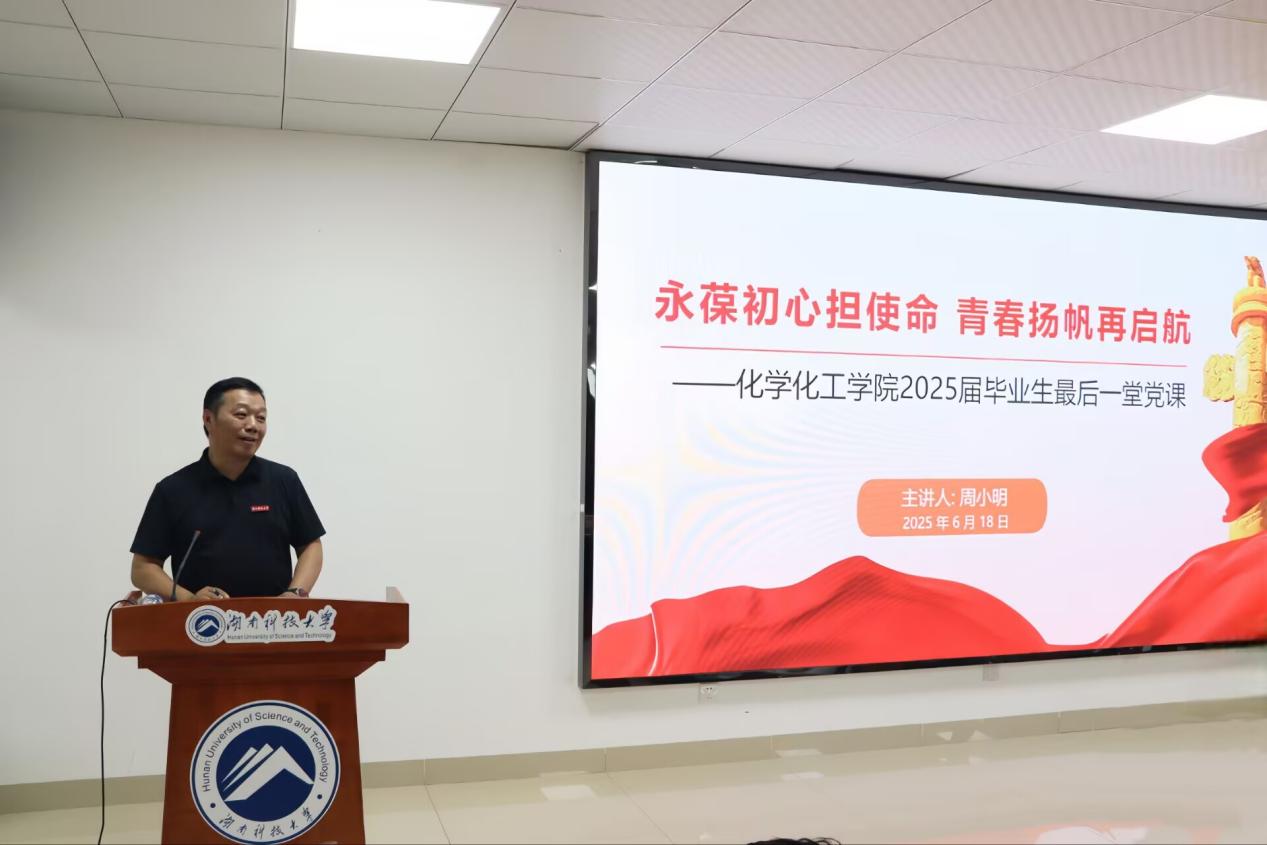 2025年6月18日上午,谈球吧于敏行楼B419会议厅为2025届优秀毕业生开展“最后一堂党课”。本次党课由公司党委副书记周小明主讲,以“永葆初心担使命,青春扬帆再启程”为主题,为即将奔赴新征程的毕业生们筑牢思想根基,指引前行方向。