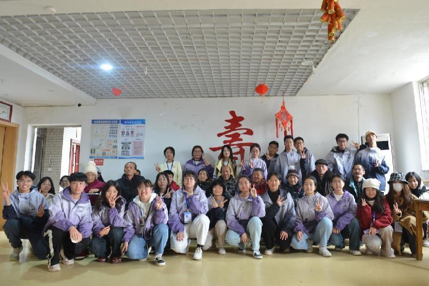 谈球吧青年志愿者与老人们合影留念