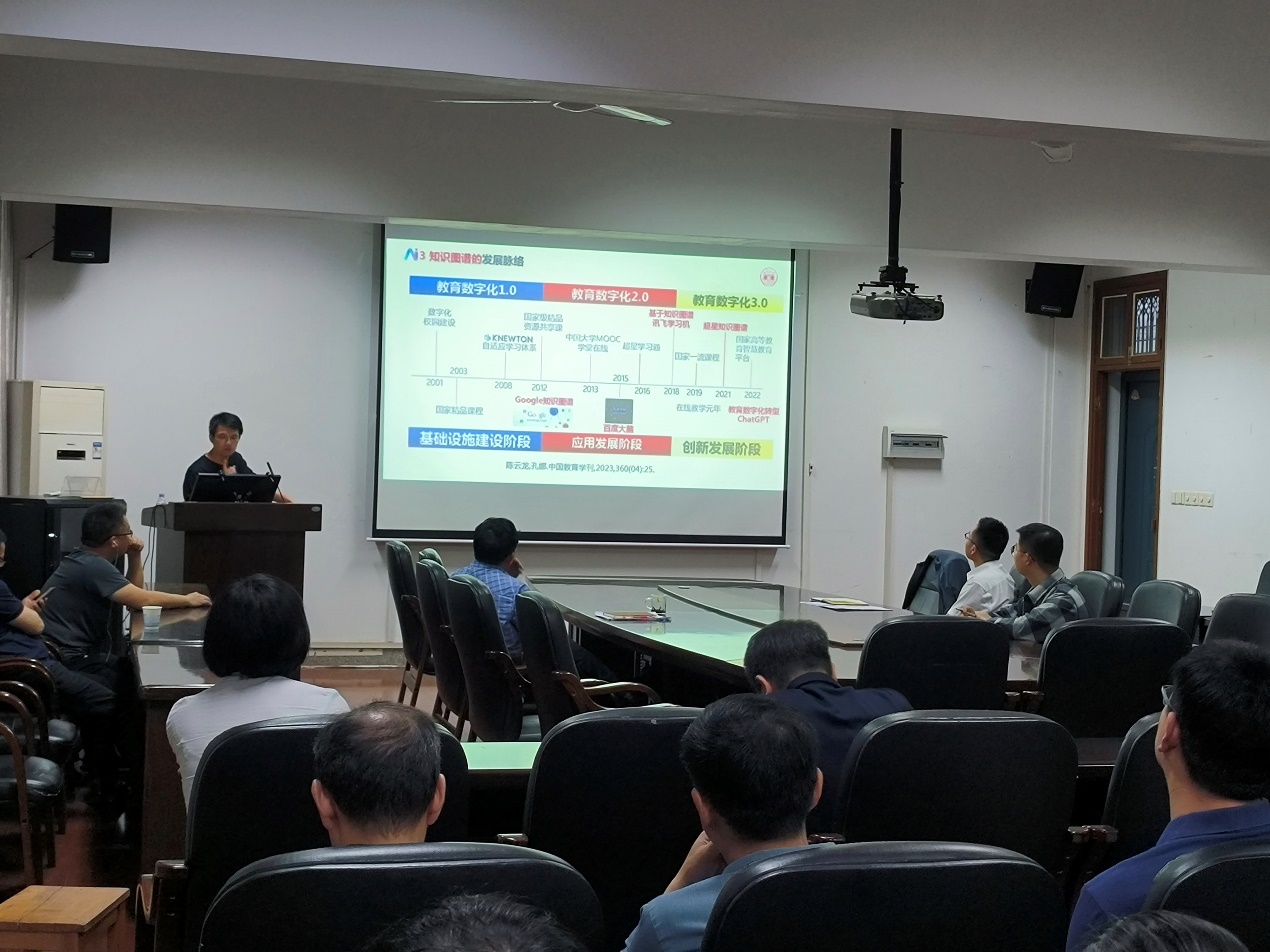 4月16日下午,谈球吧在化工楼310会议室举办了知识图谱赋能一流课程建设与教学创新报告会。本次报告会由湖南大学谈球吧教授刘强主讲,公司副经理汪靖伦主持会议,公司部分教师与会。