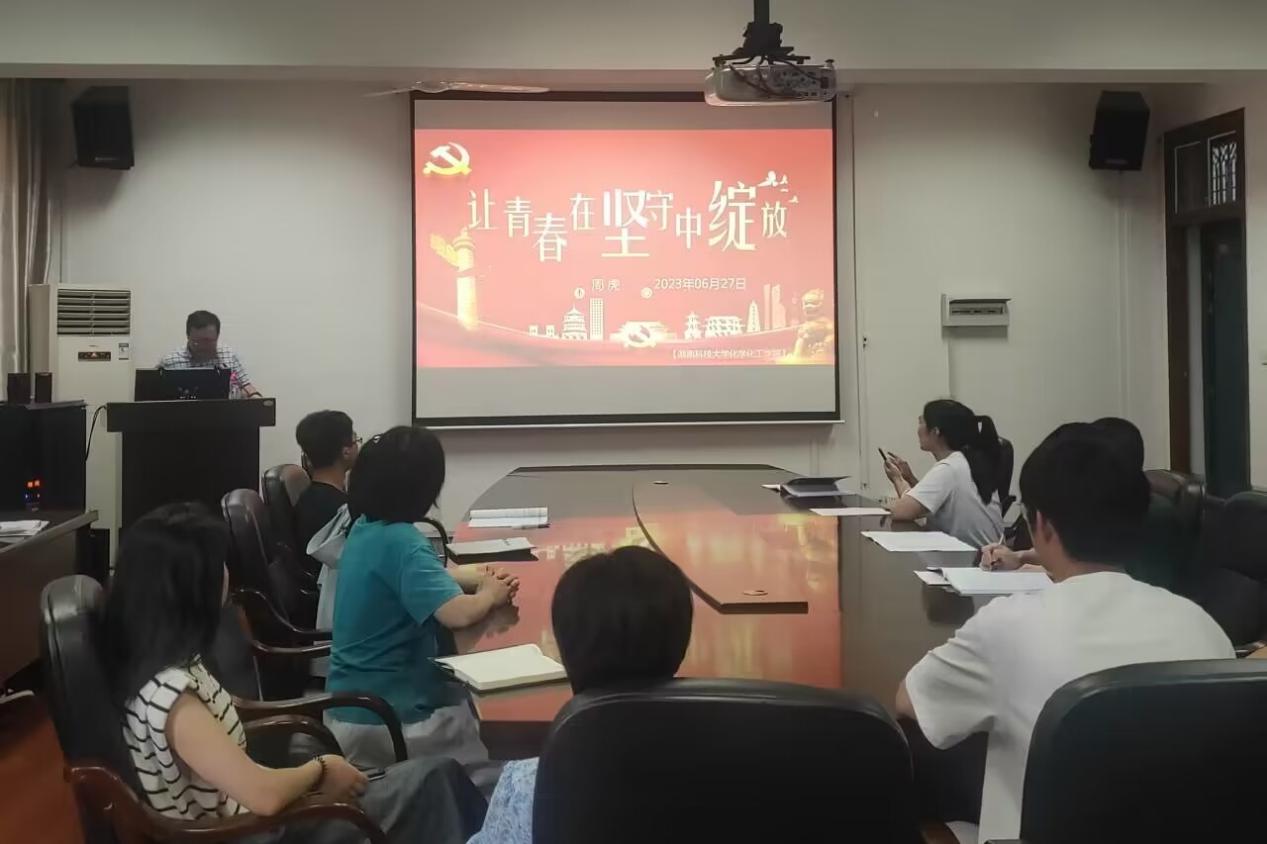 6月27日上午,谈球吧在化工楼310开展“让青春在坚守中绽放”主题党课。本次党课由谈球吧经理周虎主讲,教师党员和员工党员到场观摩学习。