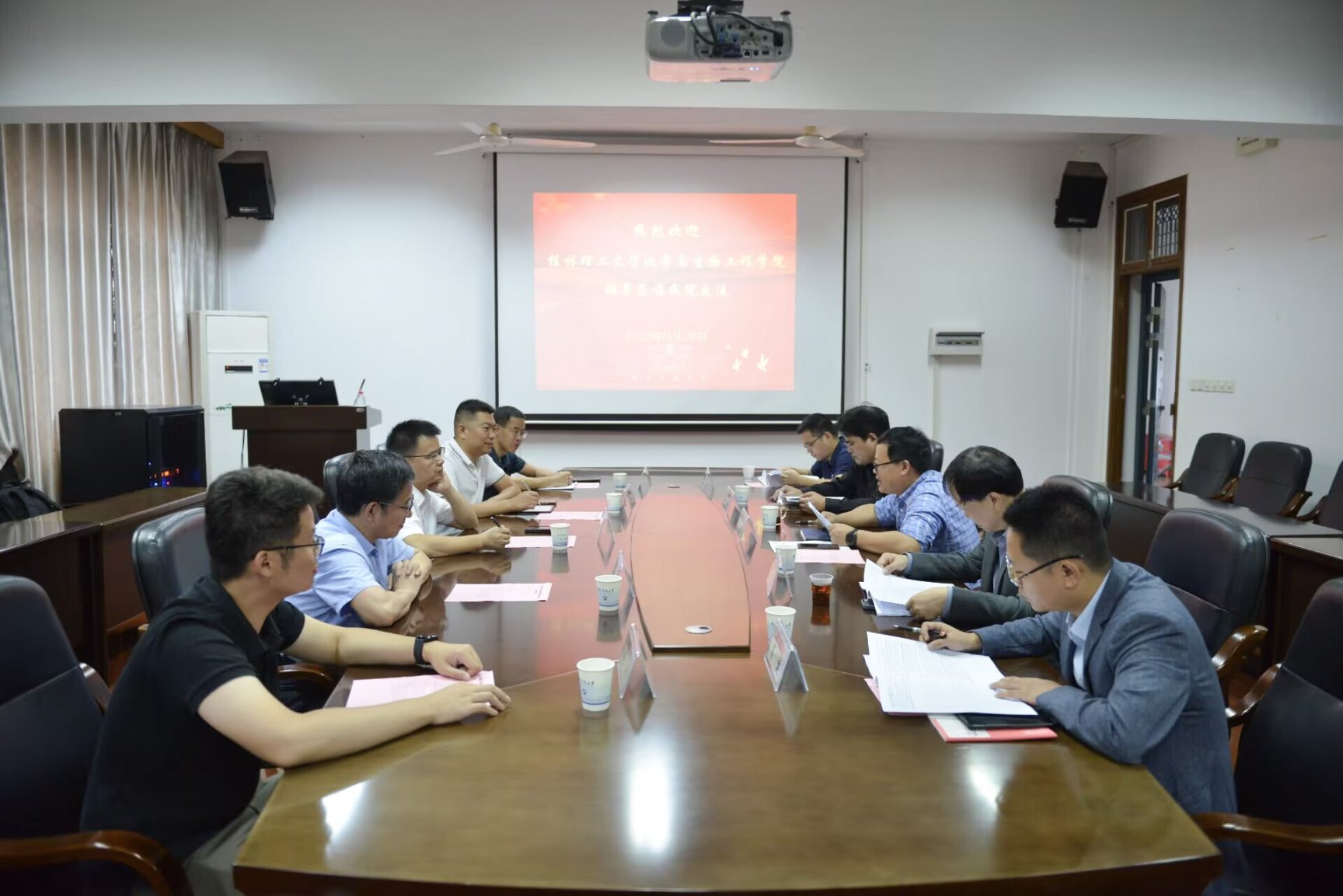9月26日上午,桂林理工大学化学与生物工程公司于化工楼310会议室同公司举行交流座谈会。桂林理工大学化学与生物工程公司经理匡小军、党委书记彭代江,谈球吧经理周虎、副经理郑柏树出席本次交流会。谈球吧经理周虎主持交流会。桂林理工大学化学与生物工程公司二级教授李建平、经理助理孔翔飞、能源化学工程教研室主任黄斌;谈球吧二级教授谢文林、应用化学研究所副所长刘雄、能源化工系主任蹇建参加交流会。